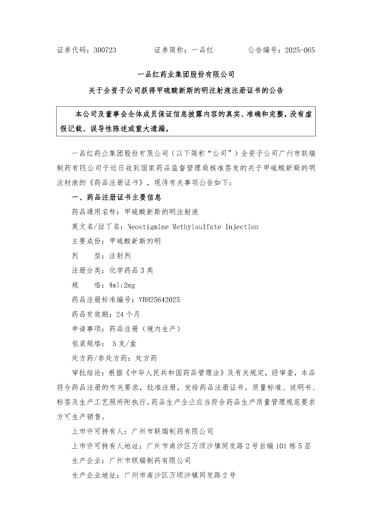 ƾ֤¡¶97¹ú¼Ê¹ØÓÚÈ«×Ê×Ó¹«Ë¾»ñµÃ¼×ÁòËáÐÂ˹µÄÃ÷×¢ÉäҺע²áÖ¤ÊéµÄͨ¸æ¡·£¨Í¨¸æ±àºÅ£º2025-065£©£¬ÏÖÓèÒÔͨ¸æ¡£